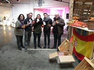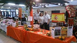 Guylène, Felipe et Manuel font connaître nos oranges, mandarines et autres produits . Pour le plus grand plaisir des visiteurs.