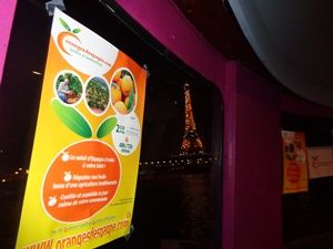 Julia et Manuel sont en pleine préparation pour la présentation de nos oranges sur le bateau mouche: Le Rivers King sur la Seine à Paris le 1º Mars 2014